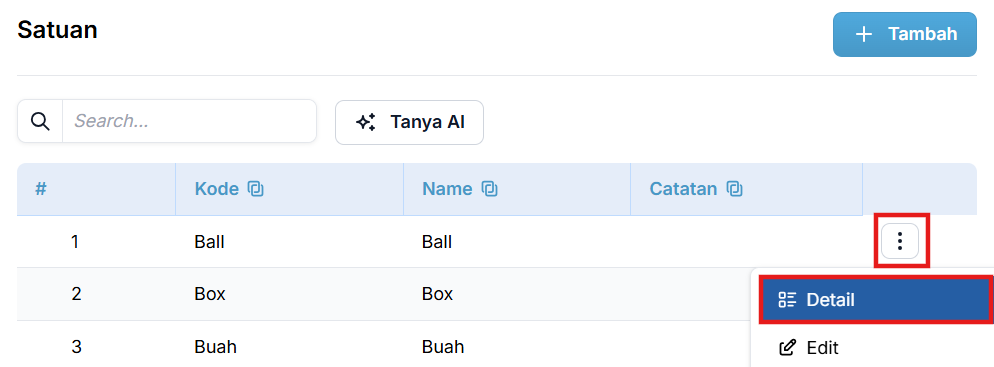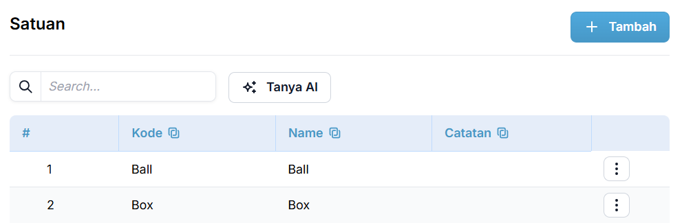 - Satuan hanya perlu dibuat baru apabila satuan tersebut belum ada di dalam sistem.