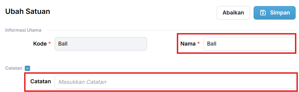 - Klik Simpan untuk menyimpan perubahan informasi satuan.